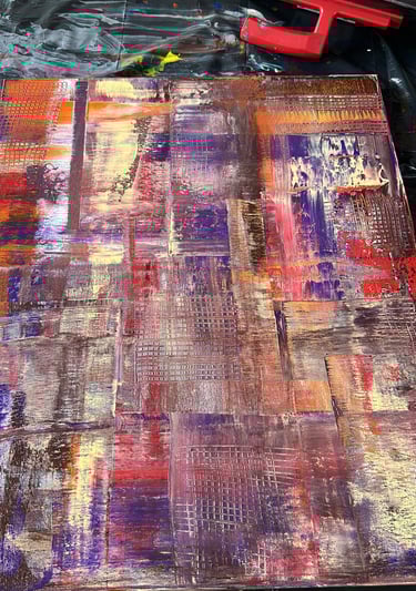Découvrez un univers de création d'images totalement différent. Travail avec raclettes et spatules.