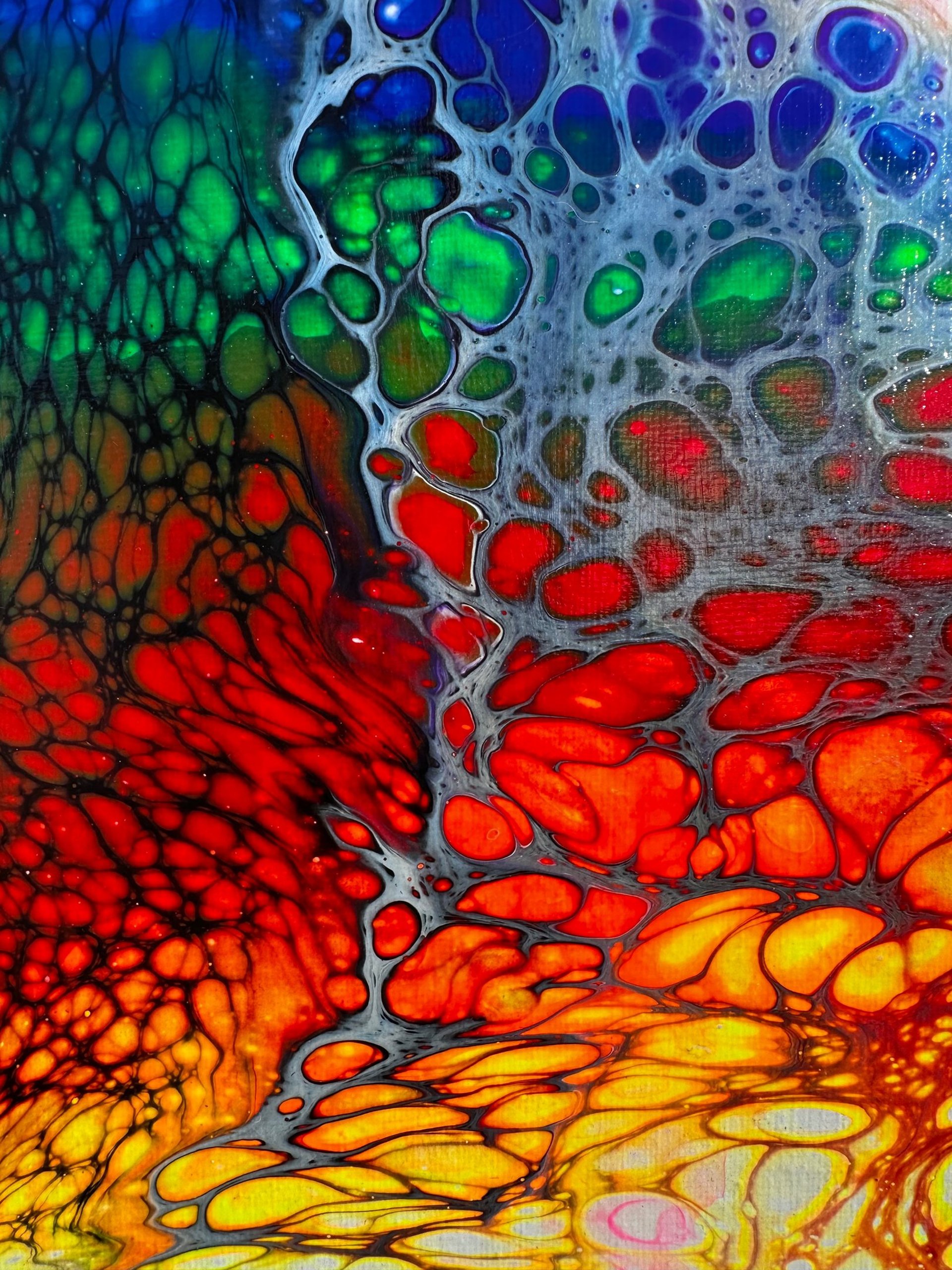 Découvrez le monde fascinant de l'acrylique dans la technique du pouring dans mes œuvres qui combinent des couleurs vibrantes et des motifs dynamiques pour créer des expressions émotionnelles qui captivent le spectateur. Chaque tableau est unique.